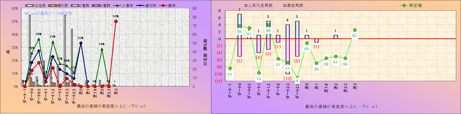 コース、最後の直線の高低差別解析(平地)-近3年- |
