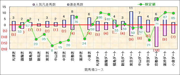 人気凡走馬:1-3番人気で着外、激走馬:5-18番人気で入着 |
