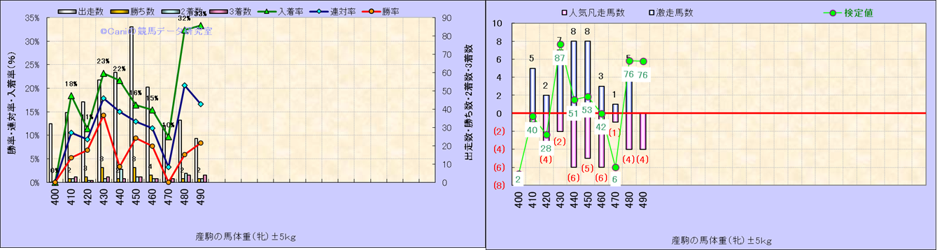 牡産駒の体重別成績-近3年- |