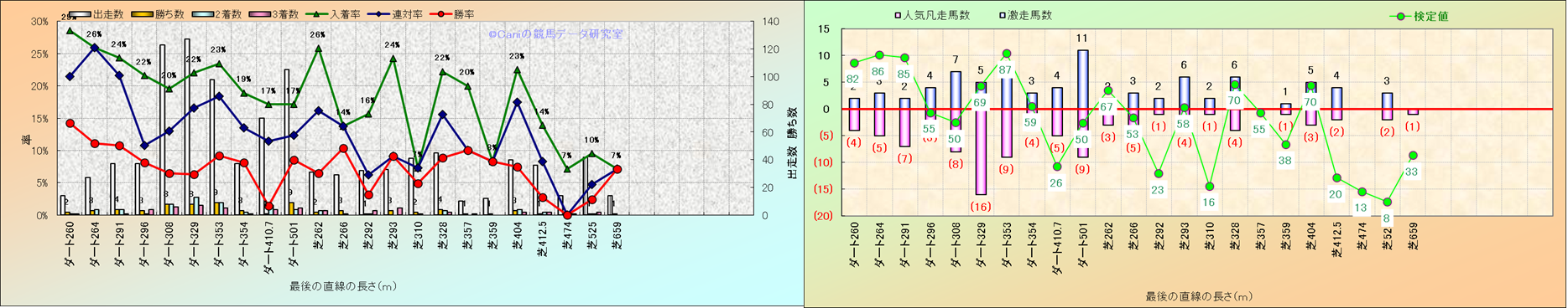 コース、最後の直線の長さ別解析(平地)-近3年- |