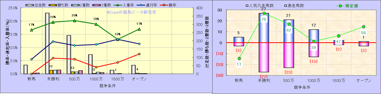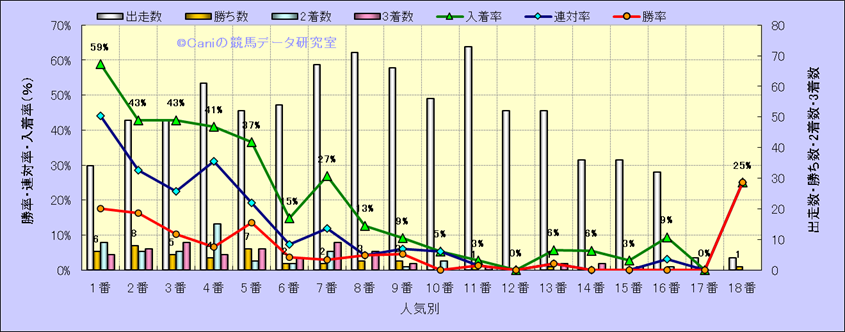 人気凡走馬:1-3番人気で着外、激走馬:5-18番人気で入着 |