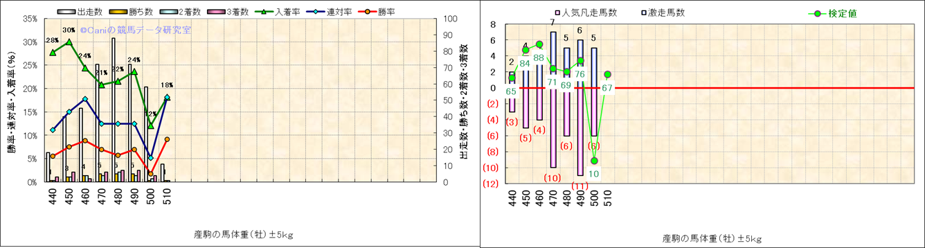 牡産駒の体重別成績-近3年- |