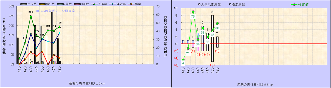 牝産駒の体重別成績-近3年- |
