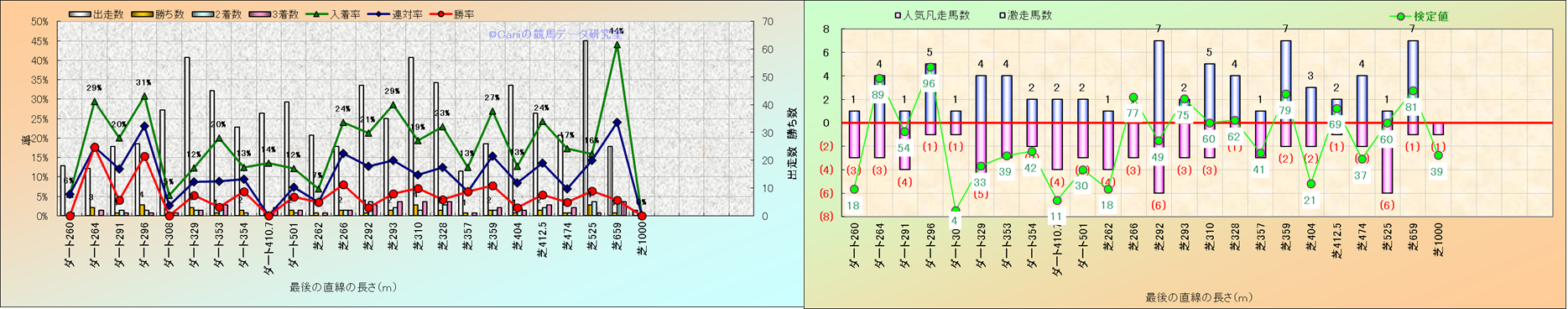 コース、最後の直線の長さ別解析(平地)-近3年- |