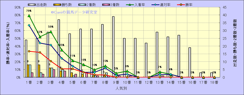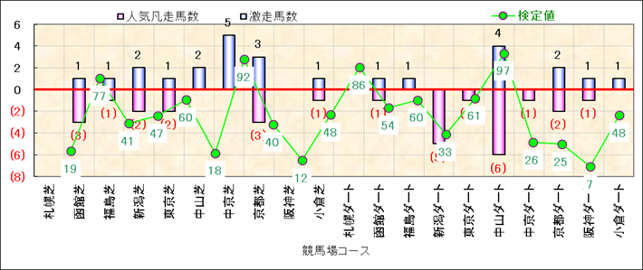 人気凡走馬:1-3番人気で着外、激走馬:5-18番人気で入着 |