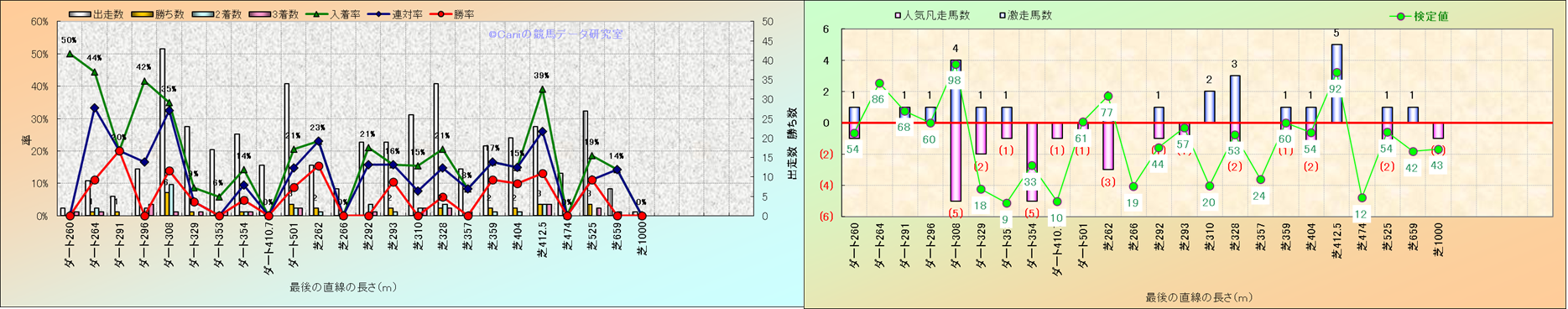 コース、最後の直線の長さ別解析(平地)-近3年- |