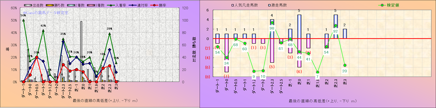コース、最後の直線の高低差別解析(平地)-近3年- |