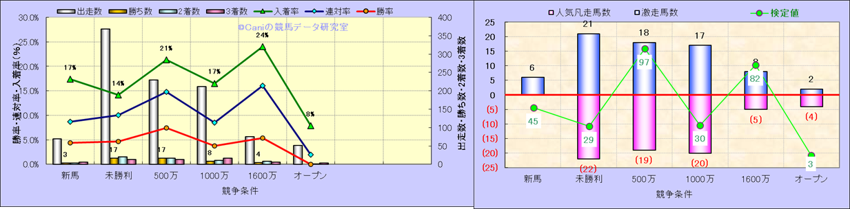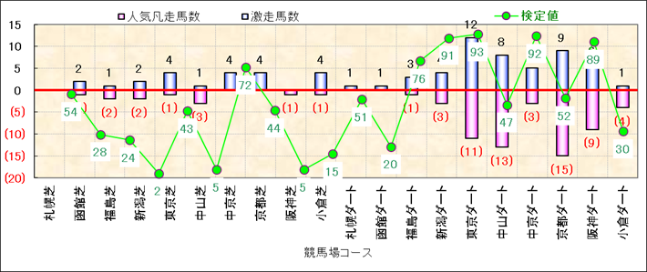 人気凡走馬:1-3番人気で着外、激走馬:5-18番人気で入着 |