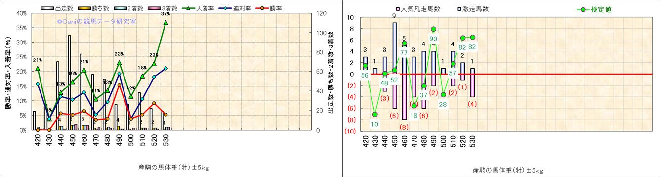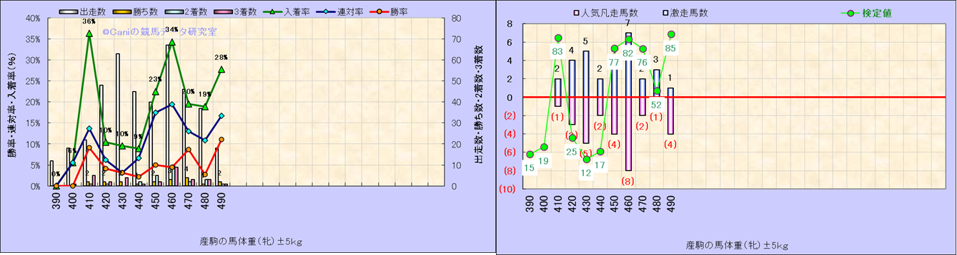 牡産駒の体重別成績-近3年- |
