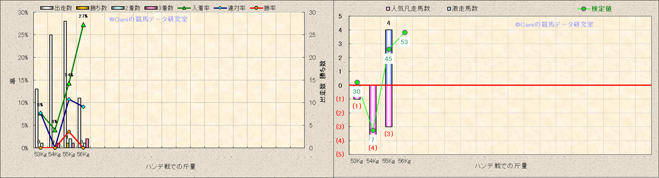 ハンデ戦での斤量別解析 |