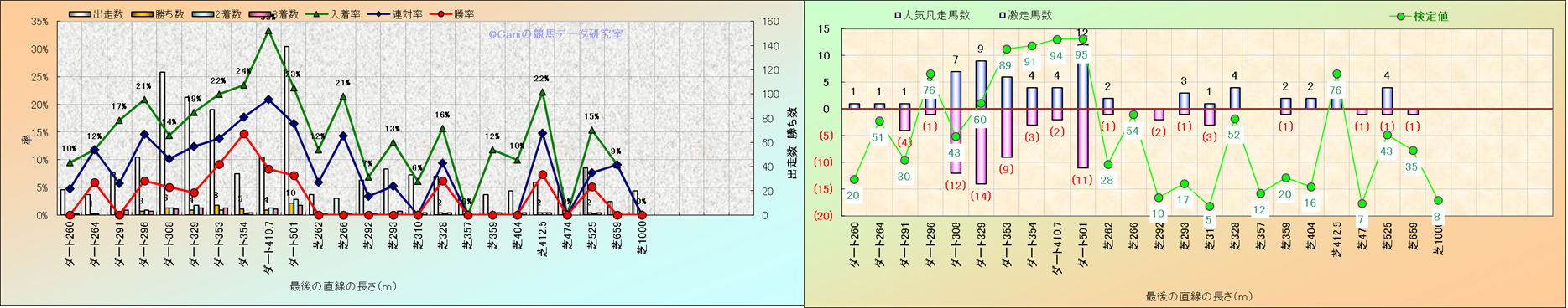 コース、最後の直線の長さ別解析(平地)-近3年- |