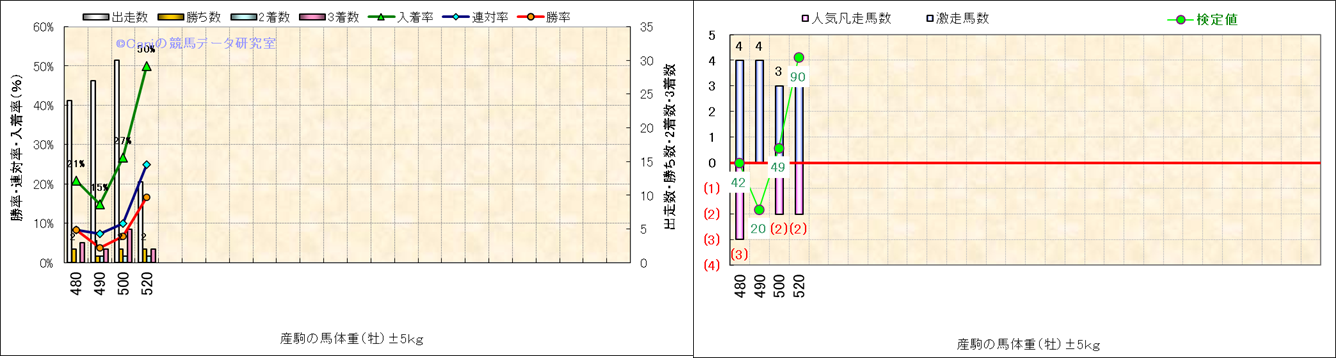 牡産駒の体重別成績-近3年- |