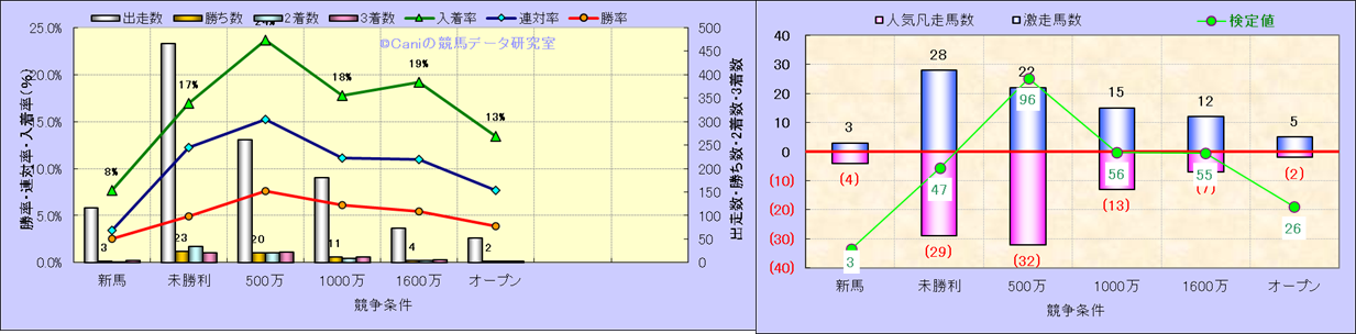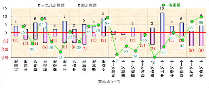 人気凡走馬:1-3番人気で着外、激走馬:5-18番人気で入着 |