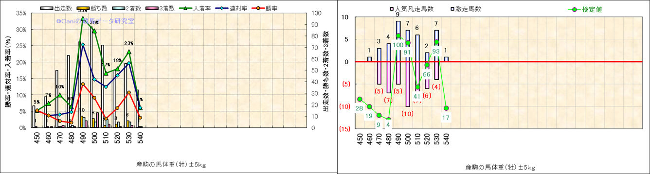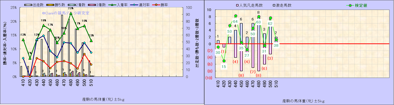 牡産駒の体重別成績-近3年- |