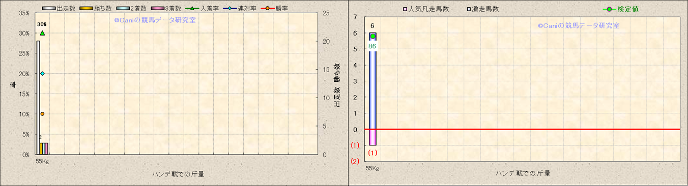 ハンデ戦での斤量別解析 |