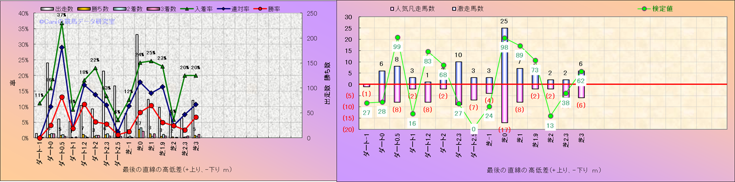 コース、最後の直線の高低差別解析(平地)-近3年- |