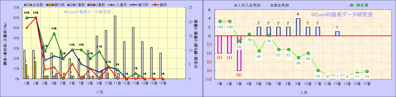 人気凡走馬:1-3番人気で着外、激走馬:5-18番人気で入着 |