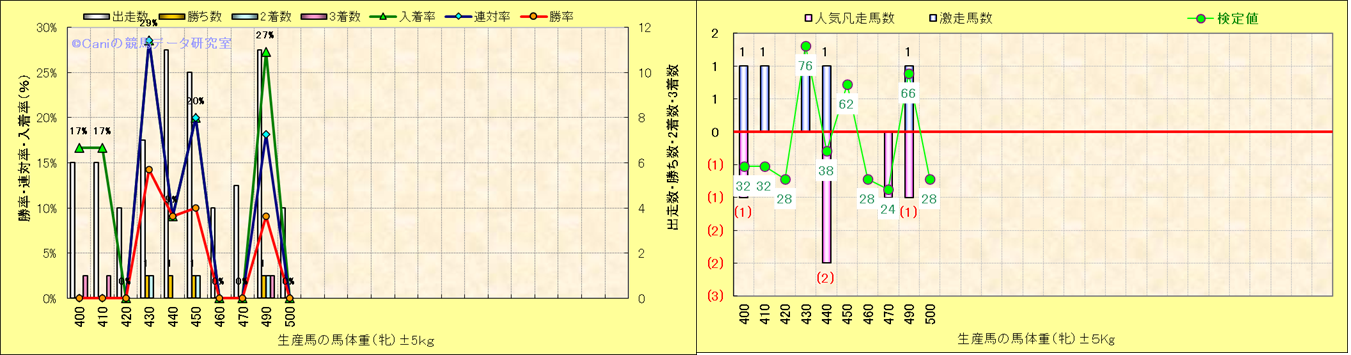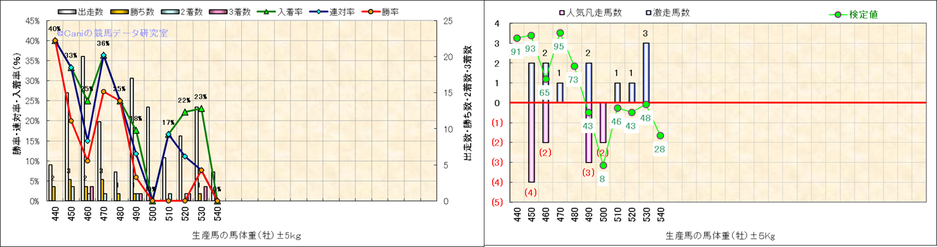 牡産駒の体重別成績-近3年- |