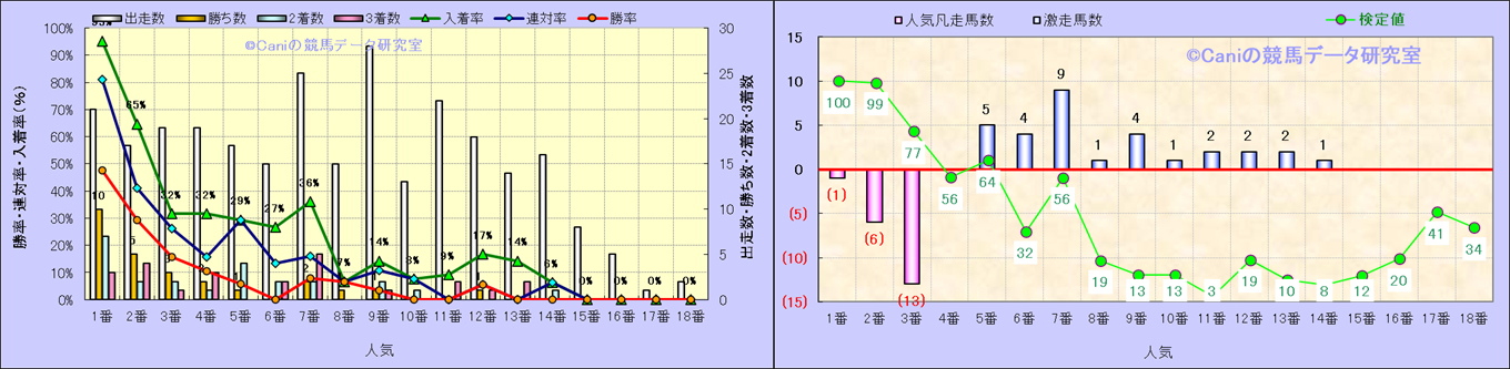 人気凡走馬:1-3番人気で着外、激走馬:5-18番人気で入着 |