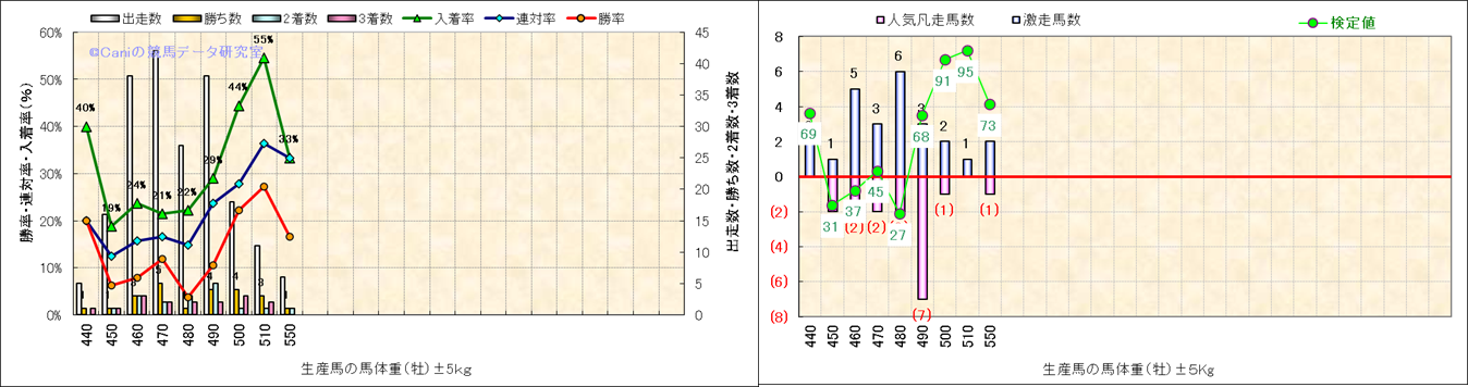 牡産駒の体重別成績-近3年- |