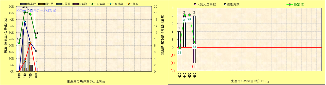 牝産駒の体重別成績-近3年- |