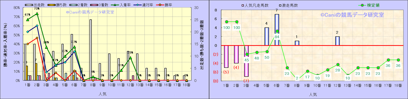 人気凡走馬:1-3番人気で着外、激走馬:5-18番人気で入着 |