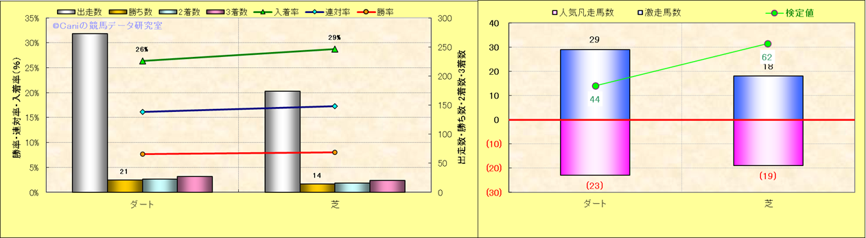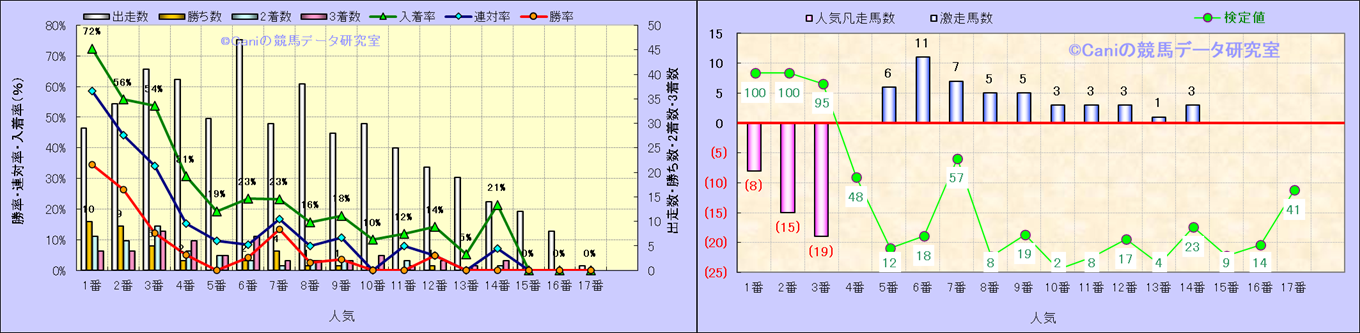 人気凡走馬:1-3番人気で着外、激走馬:5-18番人気で入着 |
