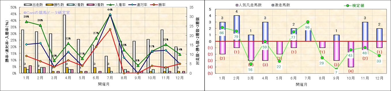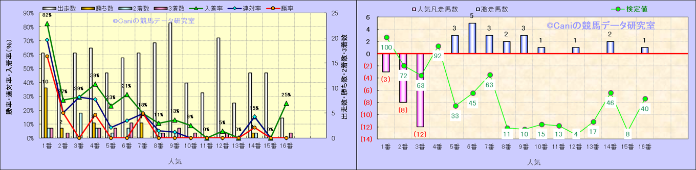人気凡走馬:1-3番人気で着外、激走馬:5-18番人気で入着 |