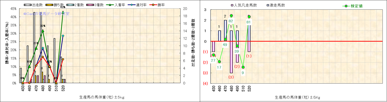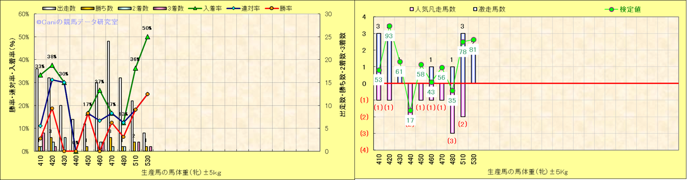 牝産駒の体重別成績-近3年- |