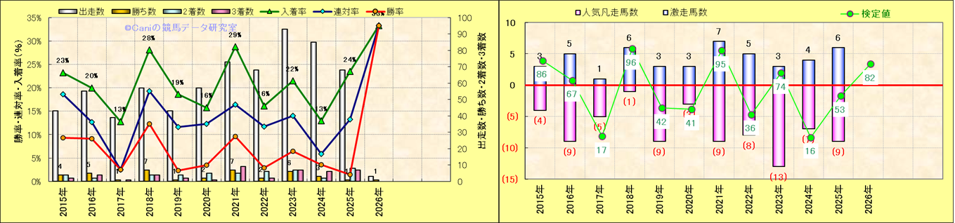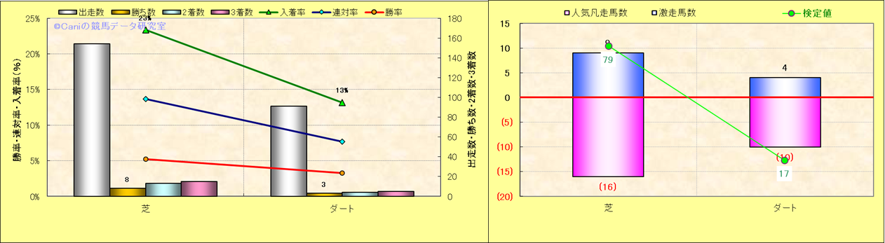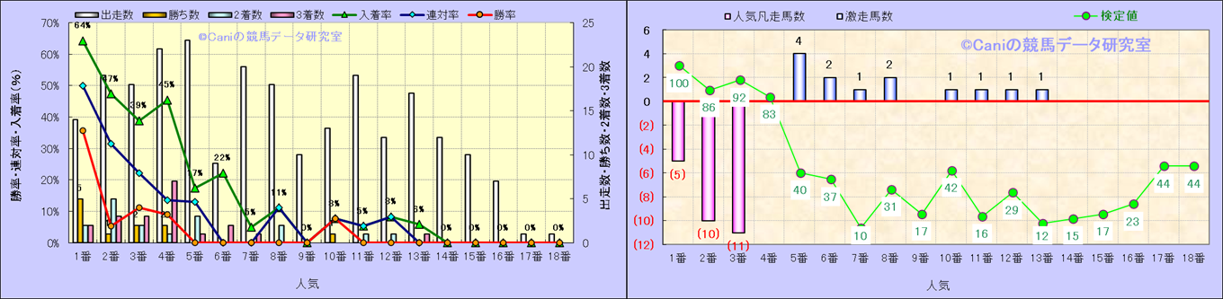 人気凡走馬:1-3番人気で着外、激走馬:5-18番人気で入着 |