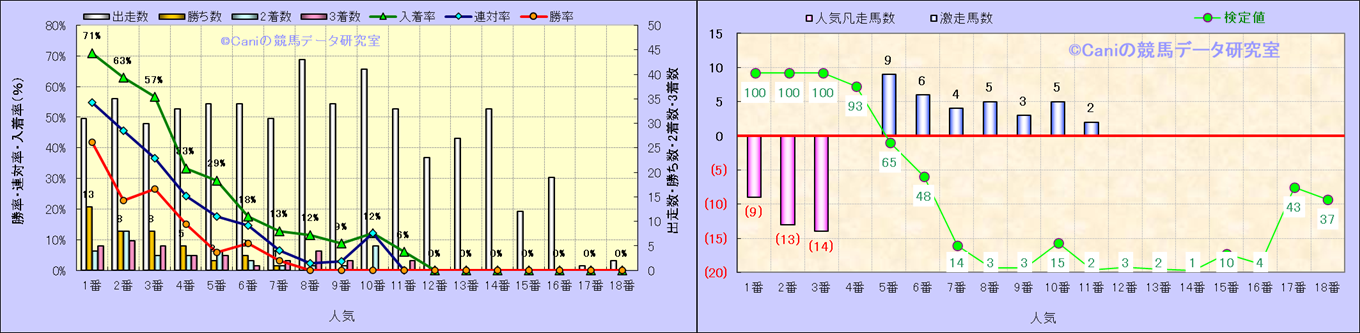 人気凡走馬:1-3番人気で着外、激走馬:5-18番人気で入着 |