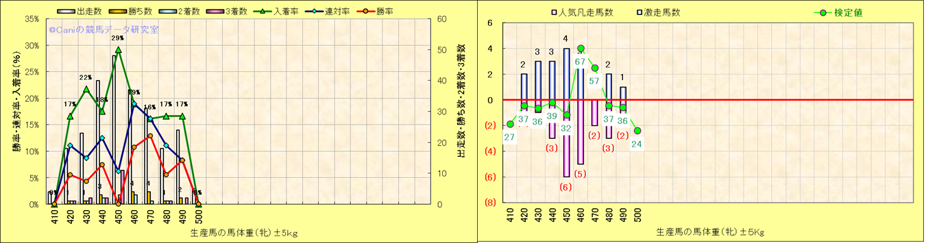 牡産駒の体重別成績-近3年- |