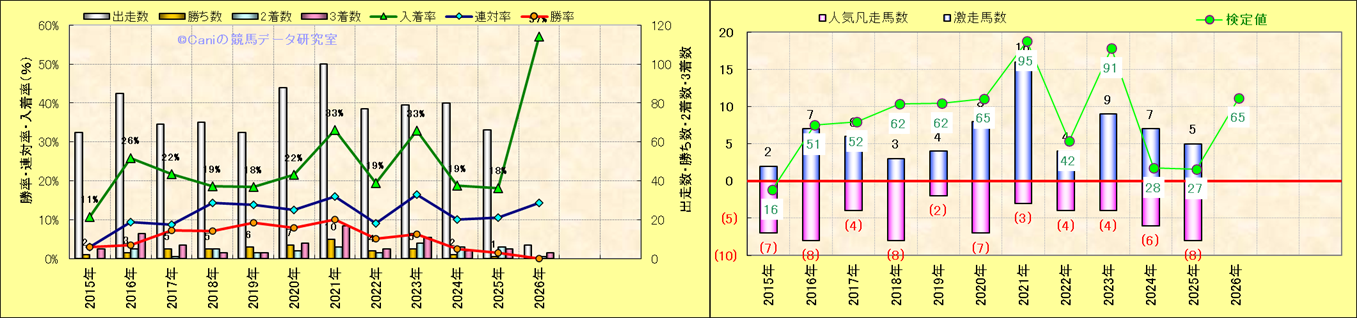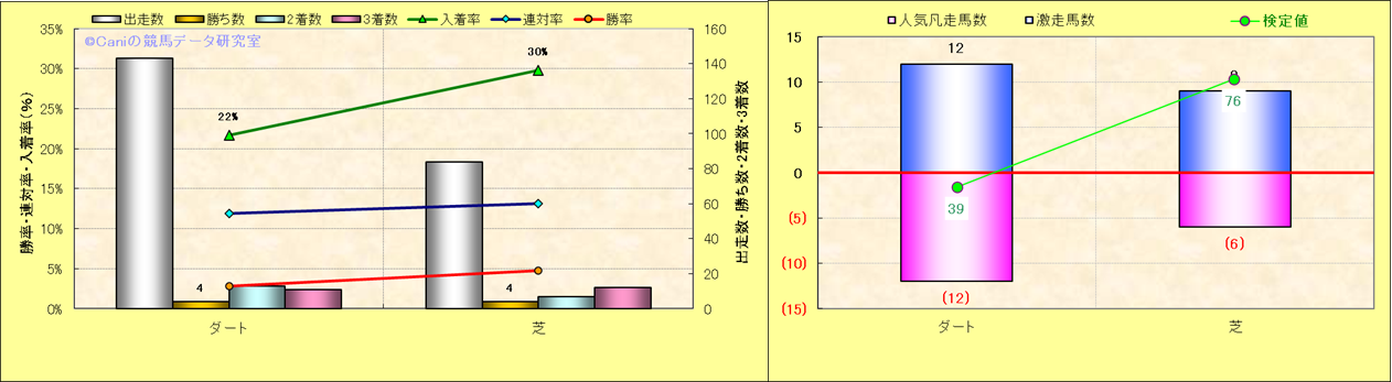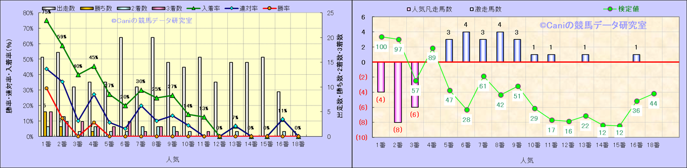 人気凡走馬:1-3番人気で着外、激走馬:5-18番人気で入着 |