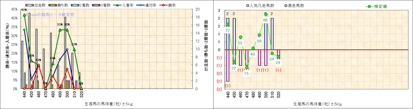 牡産駒の体重別成績-近3年- |