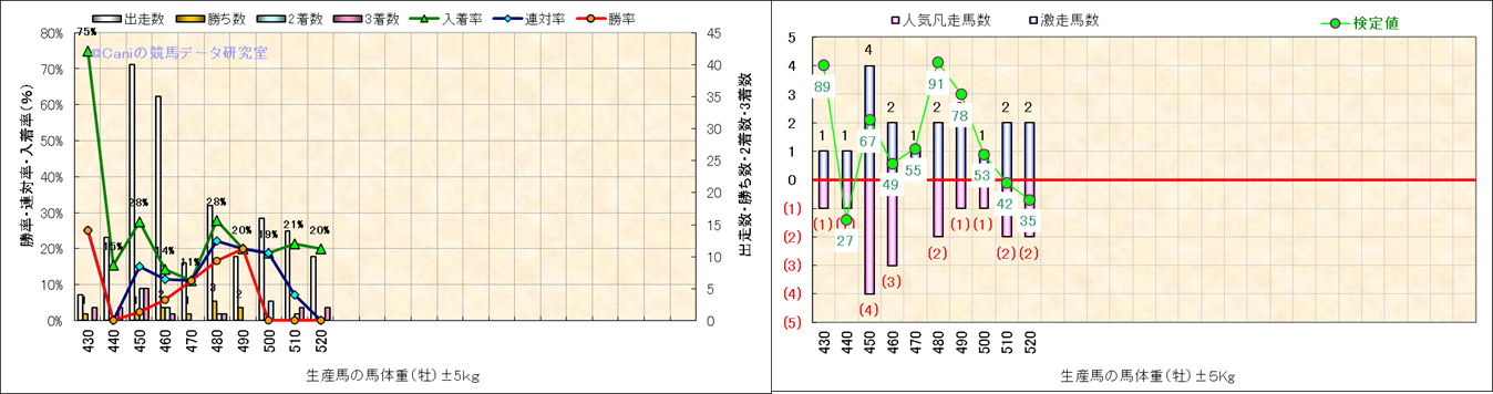牡産駒の体重別成績-近3年- |