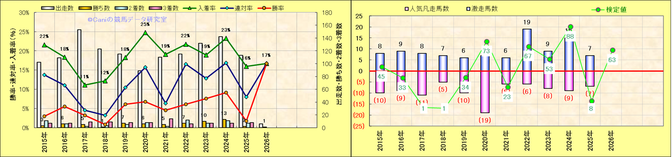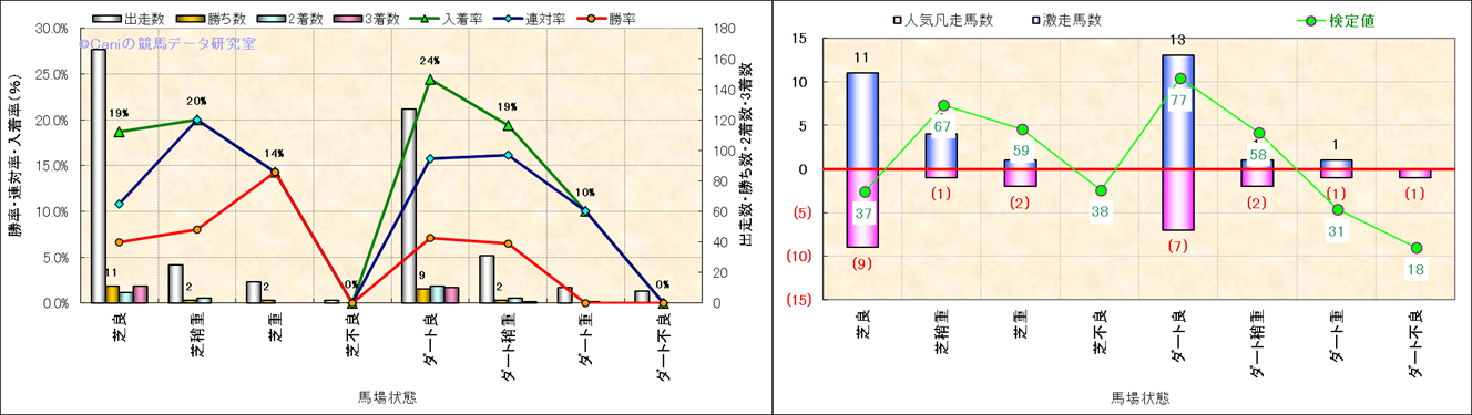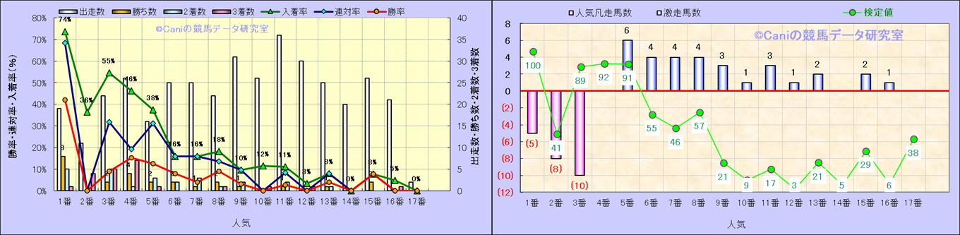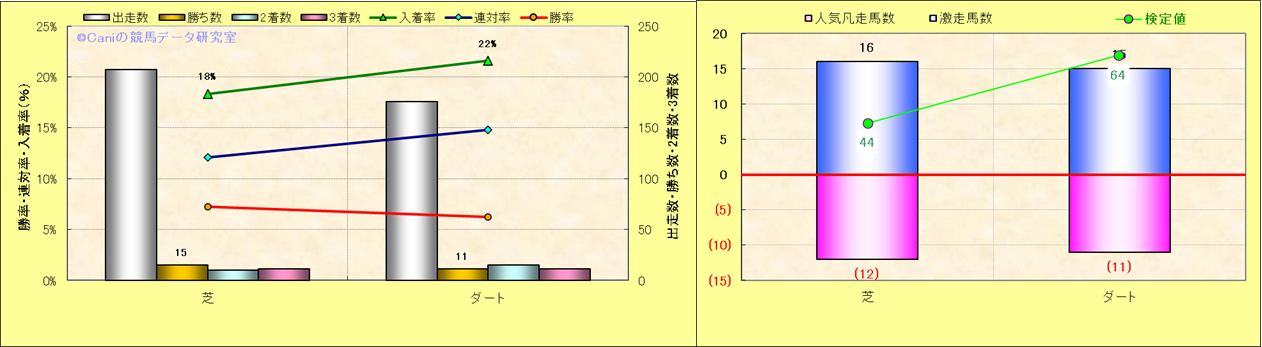 人気凡走馬:1-3番人気で着外、激走馬:5-18番人気で入着 |
