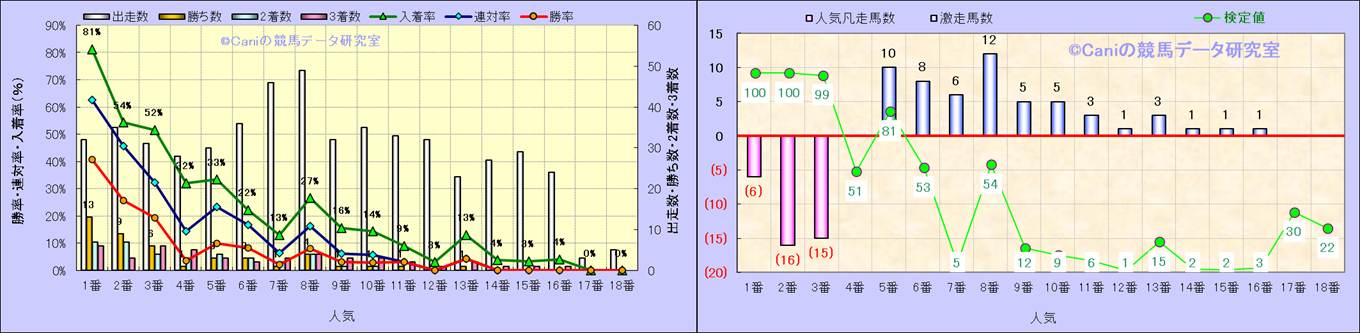 人気凡走馬:1-3番人気で着外、激走馬:5-18番人気で入着 |