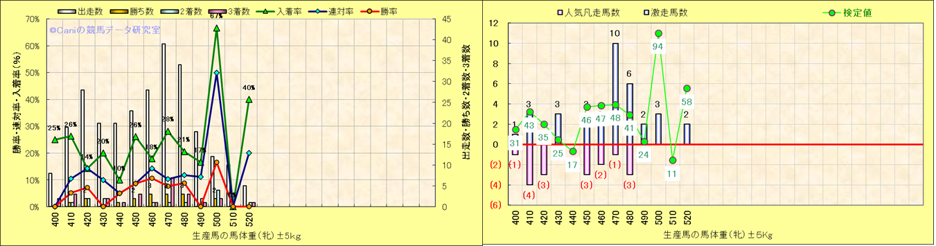 牡産駒の体重別成績-近3年- |