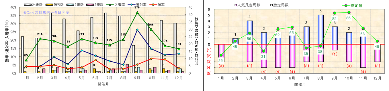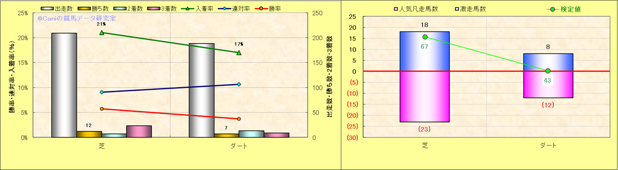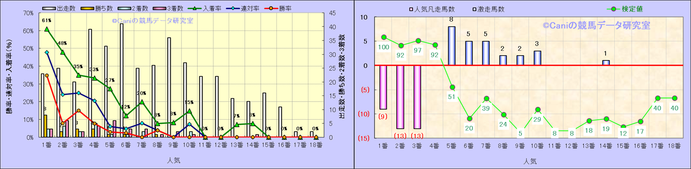 人気凡走馬:1-3番人気で着外、激走馬:5-18番人気で入着 |