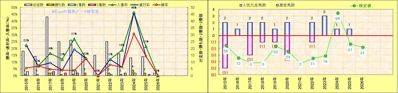 人気凡走馬:1-3番人気で着外、激走馬:5-18番人気で入着 |