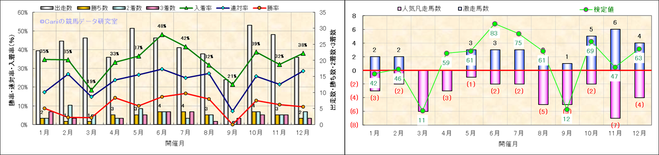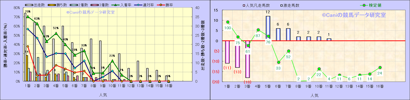 人気凡走馬:1-3番人気で着外、激走馬:5-18番人気で入着 |