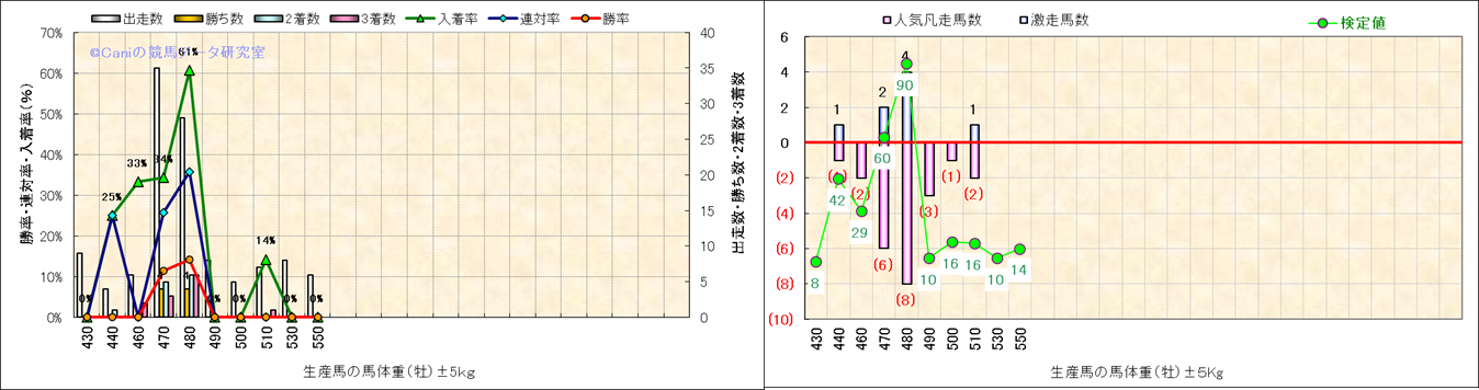 牝産駒の体重別成績-近3年- |