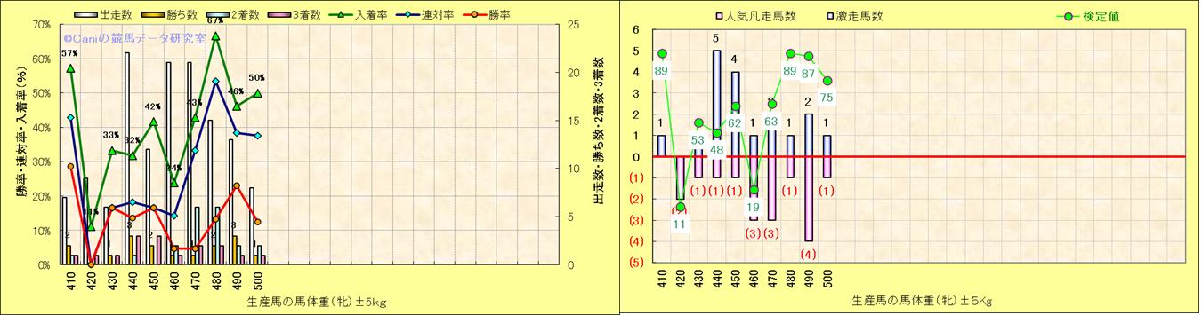 牡産駒の体重別成績-近3年- |