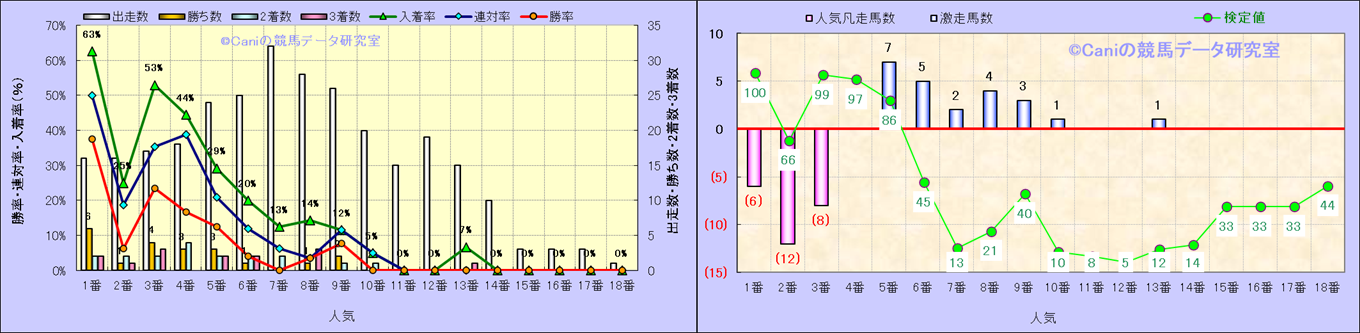 人気凡走馬:1-3番人気で着外、激走馬:5-18番人気で入着 |