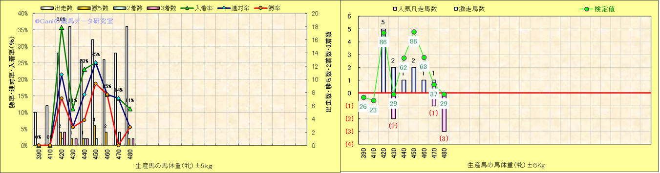 牡産駒の体重別成績-近3年- |