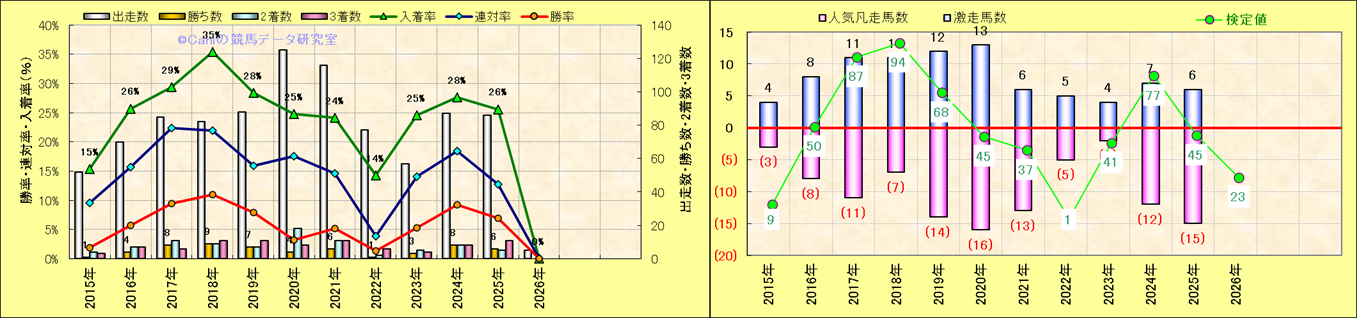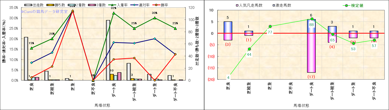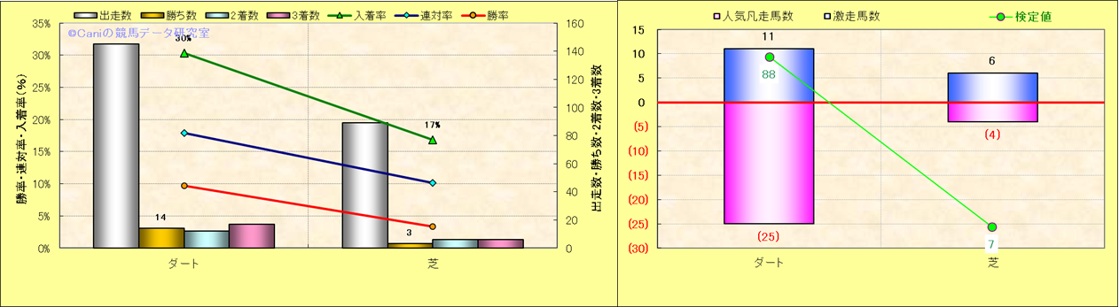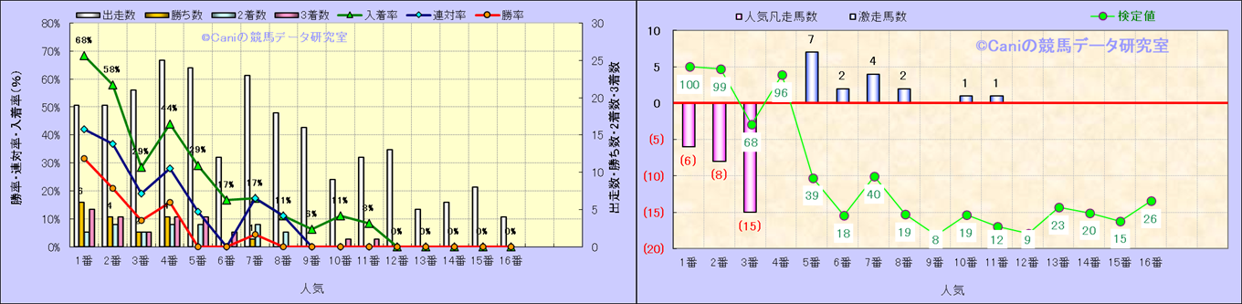 人気凡走馬:1-3番人気で着外、激走馬:5-18番人気で入着 |