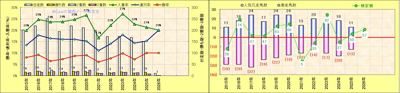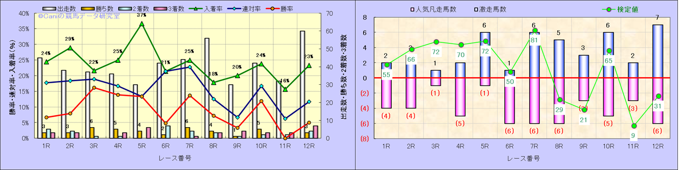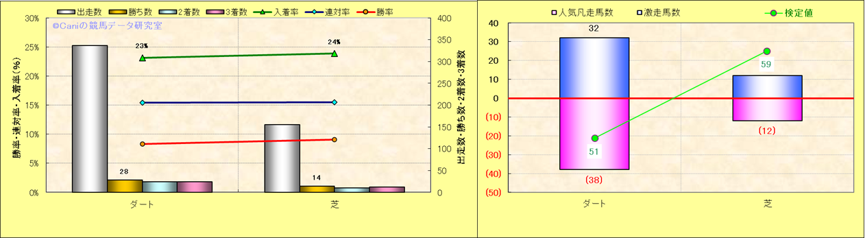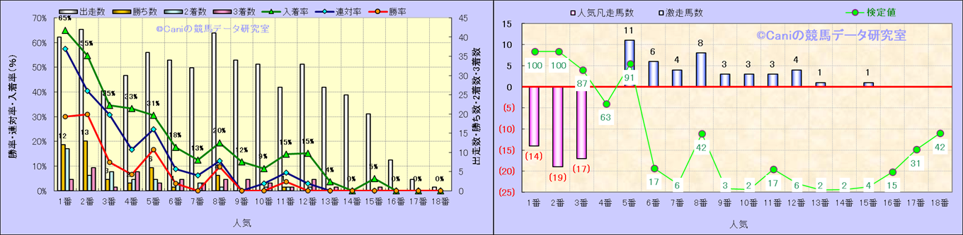 人気凡走馬:1-3番人気で着外、激走馬:5-18番人気で入着 |