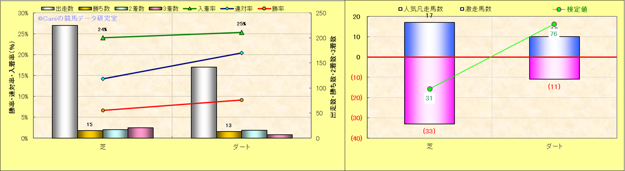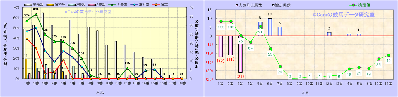 人気凡走馬:1-3番人気で着外、激走馬:5-18番人気で入着 |