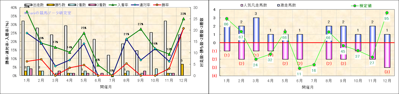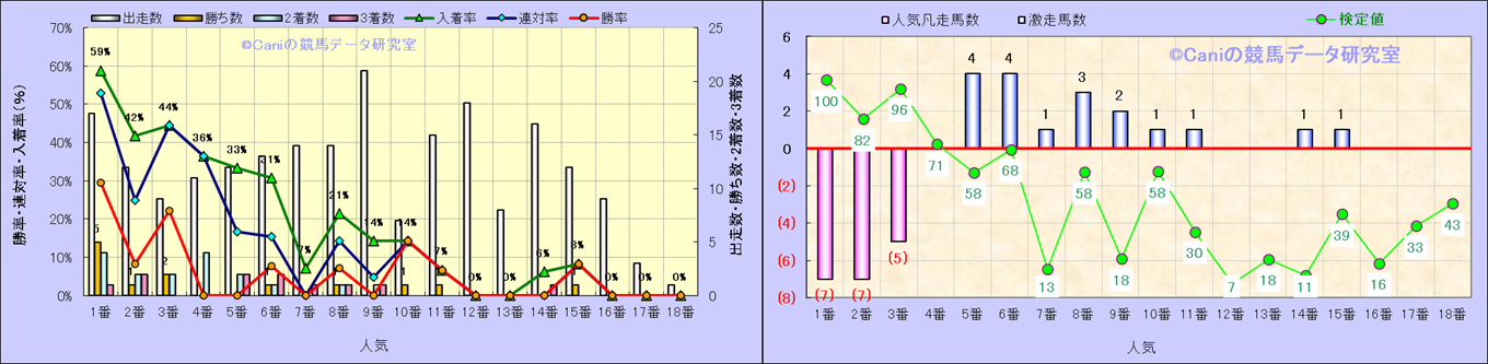 人気凡走馬:1-3番人気で着外、激走馬:5-18番人気で入着 |