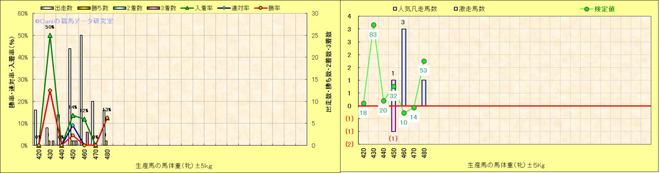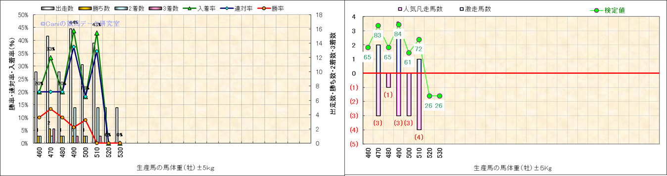 牡産駒の体重別成績-近3年- |